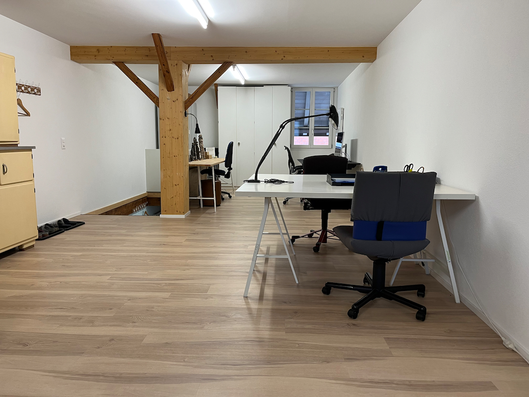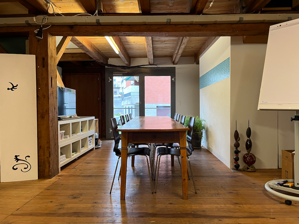 Küche und Besprechungsbereich steht im Erdgeschoss zur Verfügung. Internet, Licht, Strom sind im Mietzins inbegriffen.